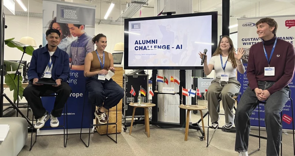 - The alumni: Samuel Fischer, Fevronija Panova, Mara Mitxelena Ruiz and Asjid Bajwa. What a pleasure it has been to have you take part in this training event. You have given us valuable insights in AI and education and what you as alumni and student see what is truly needed.