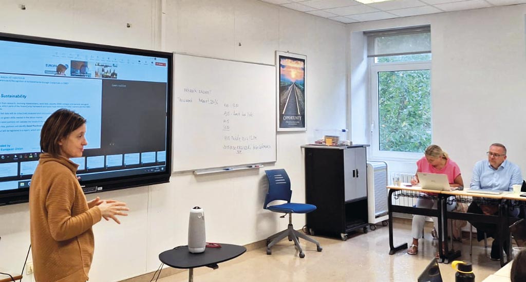 The meeting combined research reflection, curriculum development, and exchange of good practices. Participants validated survey and focus group results, structured examples of sustainability in practice, and discussed how GreenComp can be translated into EBBD learning units. A central focus was the design of a pilot EBBD micro-credential on sustainability, which will strengthen the certificate by providing students with a competence-oriented, future-proof qualification.